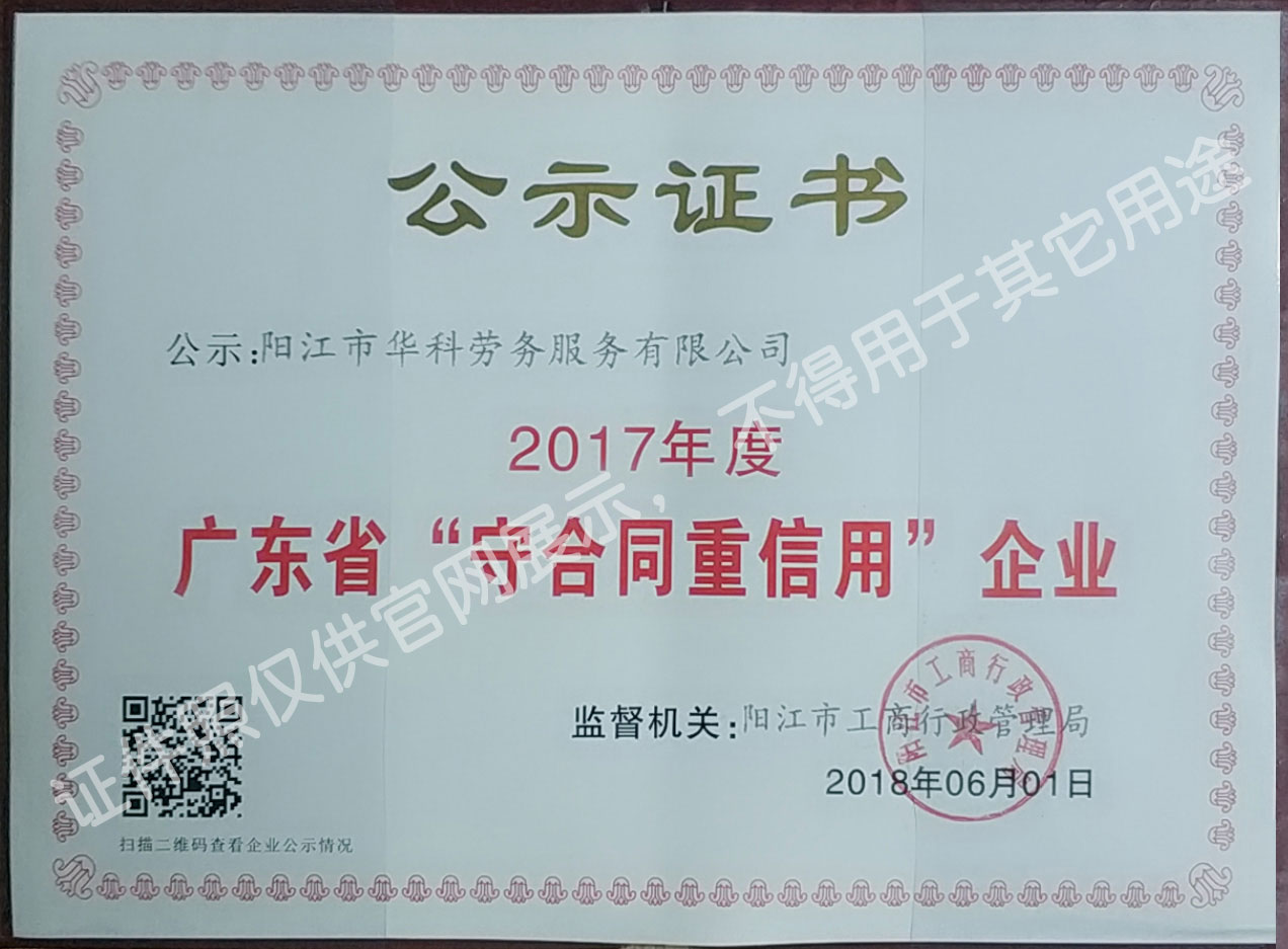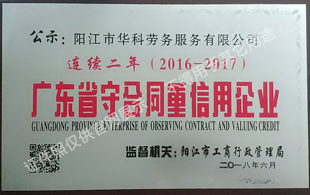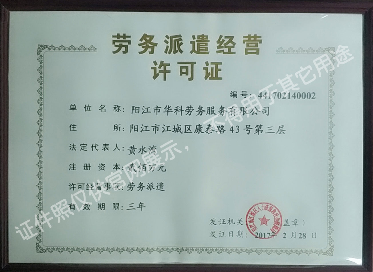 華科勞務(wù)服務(wù)有限公司是專業(yè)從事人事代理、勞務(wù)租賃、人力派遣及管理的綜合性服務(wù)機(jī)構(gòu),是首批獲得廣東省人力資源廳、陽江市勞動和社會保障局頒發(fā)人力資源許可證的合法單位。公司秉承“誠信務(wù)實(shí)、專業(yè)熱情、滿意第一、服務(wù)社群”的經(jīng)營理念,在勞務(wù)派遣業(yè)務(wù)的基礎(chǔ)上,更致力于合同制工人(臨時工、實(shí)習(xí)生、假期工)方向發(fā)展,為用工企業(yè)及時輸送合格的各類人才,合理調(diào)配人力資源的有序流動,幫助求職者尋求更加滿意的就業(yè)渠道和崗位,切實(shí)維護(hù)求職者的合法權(quán)益。